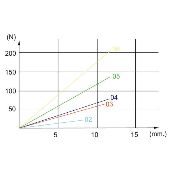 Fuerza de sujeción (N) y compresión del resorte (mm.)
