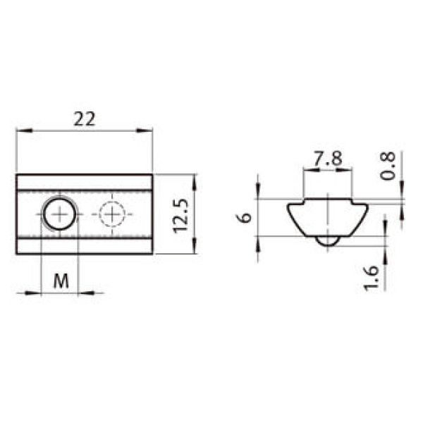 Tuerca roll-in en 'T' con bola (12,5x6,0)
