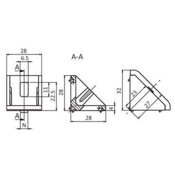 Para unir dos perfiles de aluminio en ángulo recto, se puede suministrar con tapa de manera opcional.